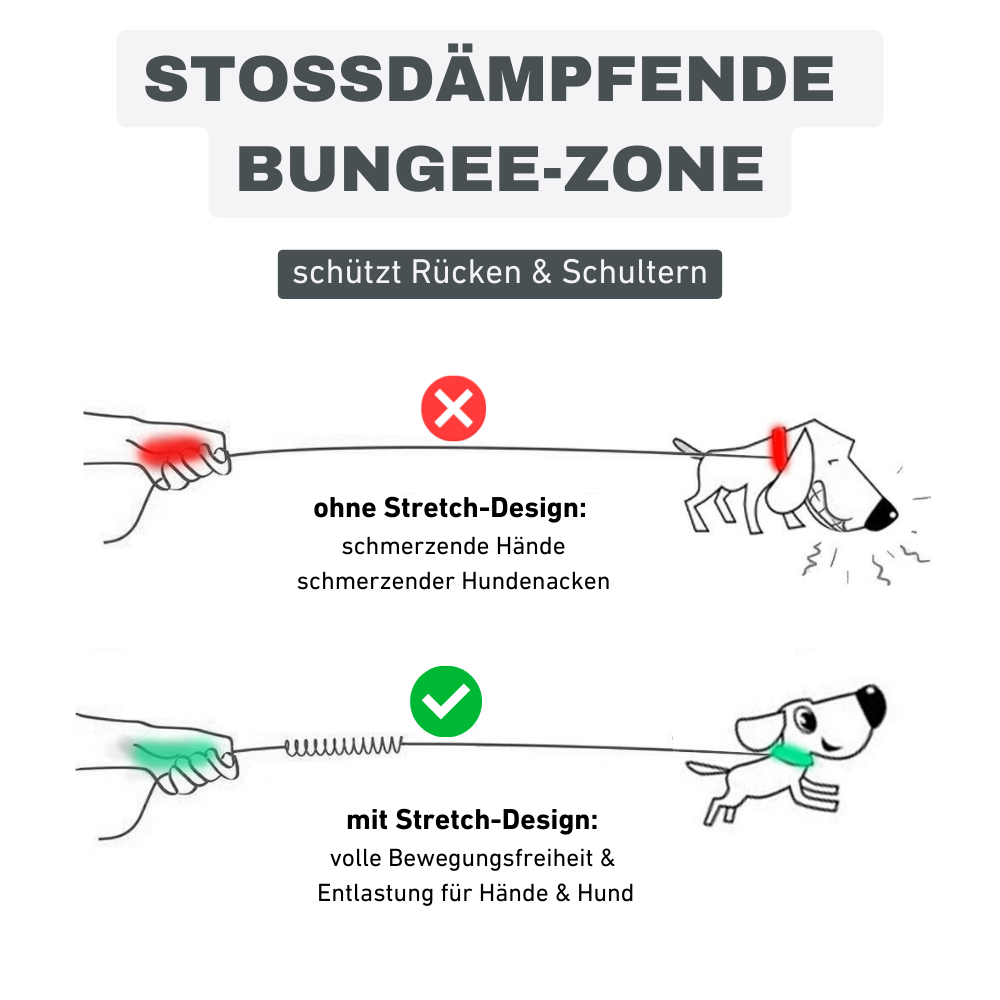 Die Leine passt sich flexibel deiner Bewegung an – ganz ohne Ziehen, Zerren oder Verknoten.